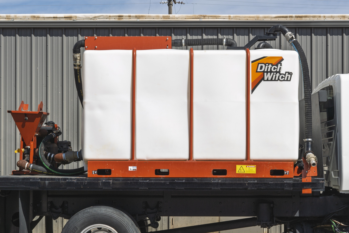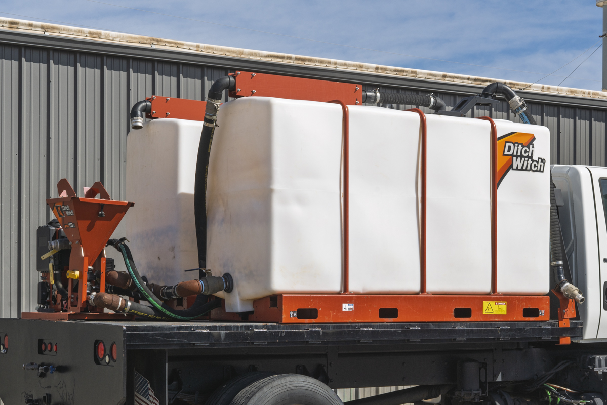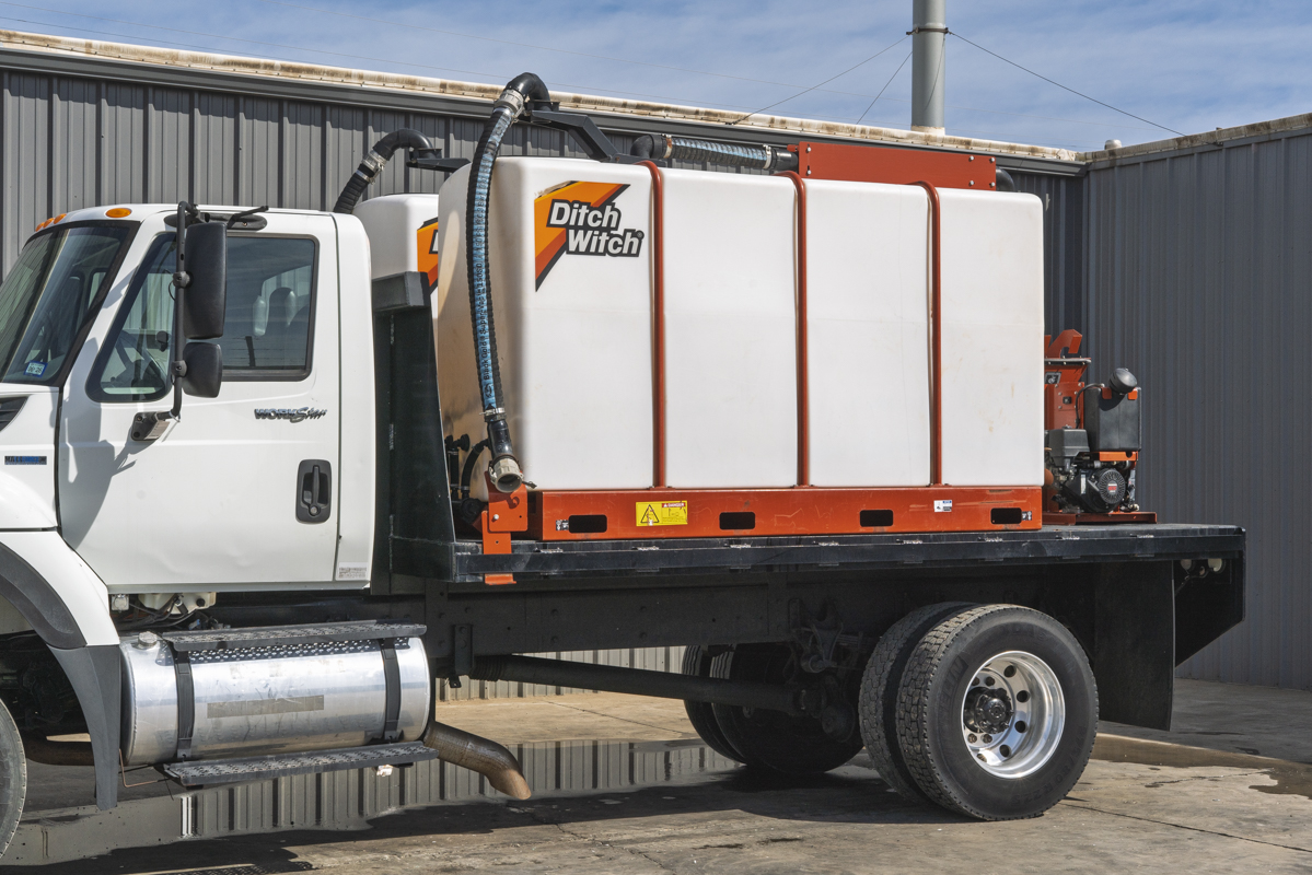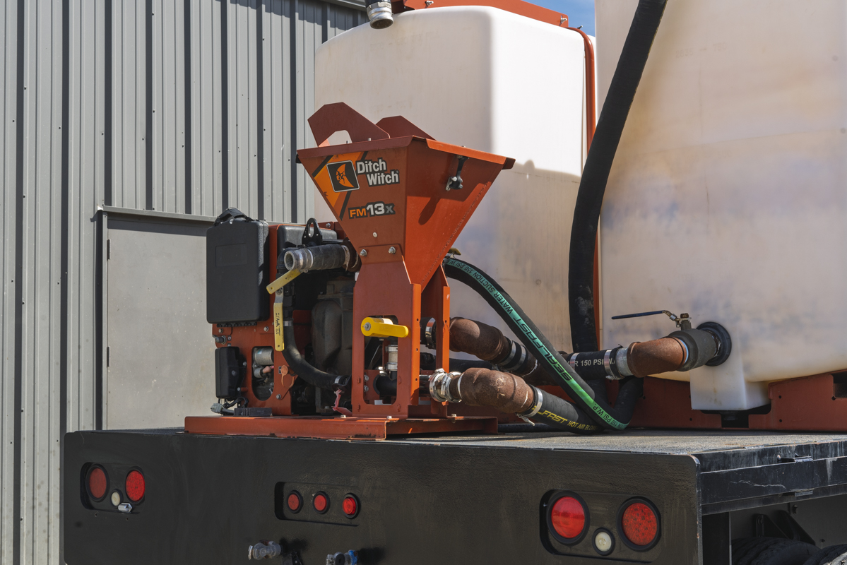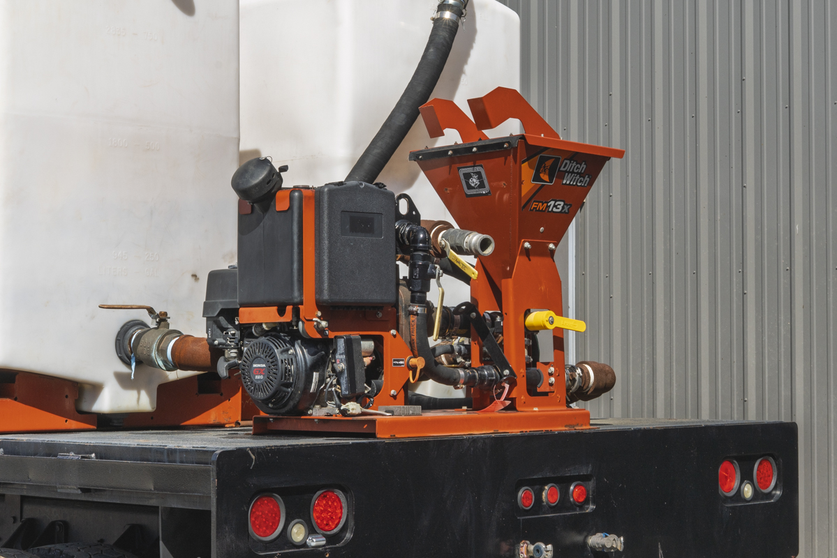2011 International WorkStar 7500 4WD flat-bed mud mixing truck with 149,531 miles. This 2011 International WorkStar 7500 4-wheel-drive mud truck is powered by a 310 horsepower MAXXFORCE 10 9.3 liter diesel engine w/ 10-speed Eaton transmission, and rides on polished aluminum wheels. This mud truck has a 2021 Ditch Witch FM13x (SKU # 9300-811) mud mixing system with 405 hours, and two Ditch Witch 1,000-gallon tanks mounted on it's 14' flatbed.