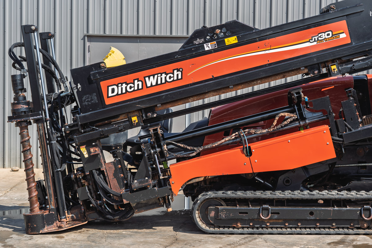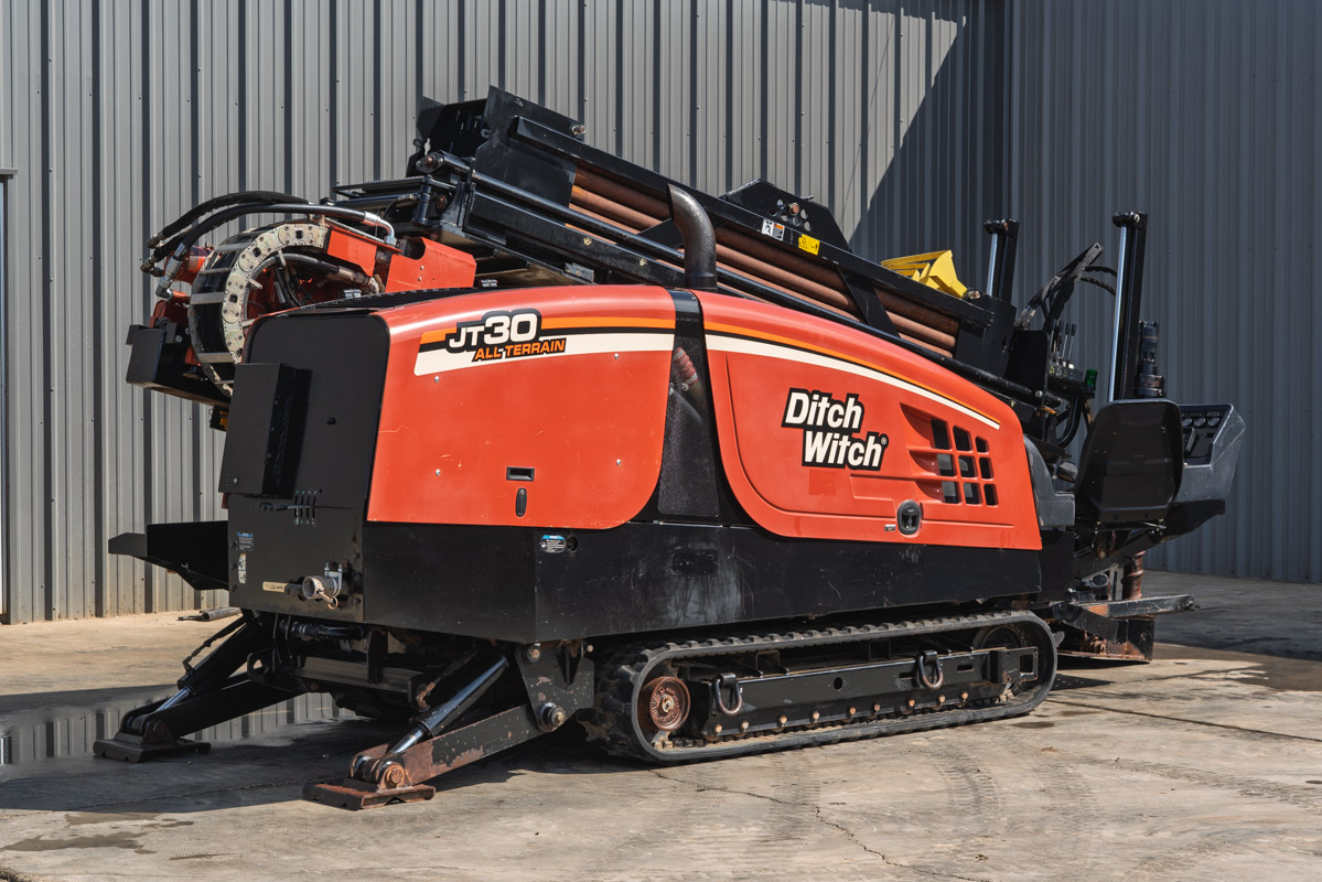 This 2015 Ditch Witch JT30 ALL TERRAIN horizontal directional drill with 3,227 hours (169 inner rotation hours) is in good condition. This HDD drill has rubber tracks, and a 35-piece pipe basket. The rig also comes with 35 pieces of Rock drill pipe (350 total feet). The power plant and fluid systemwill be fully serviced and inspected. This JT30AT will undergo a complete inspection of mechanical and hydraulic systems and will be drilled with at our facility to ensure it meets our Ready-To- Work standards.