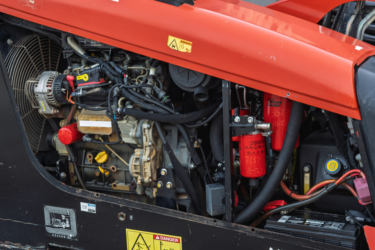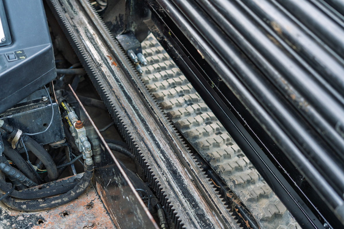 This 2017 Ditch Witch JT10 horizontal directional drill with 3,515 hours is in good condition for its age and hours. This Ditch Witch HDD drill has rubber tracks, 15-GPM mud pump, and a 50-piece pipe rack. The rig also comes with 50 pieces of