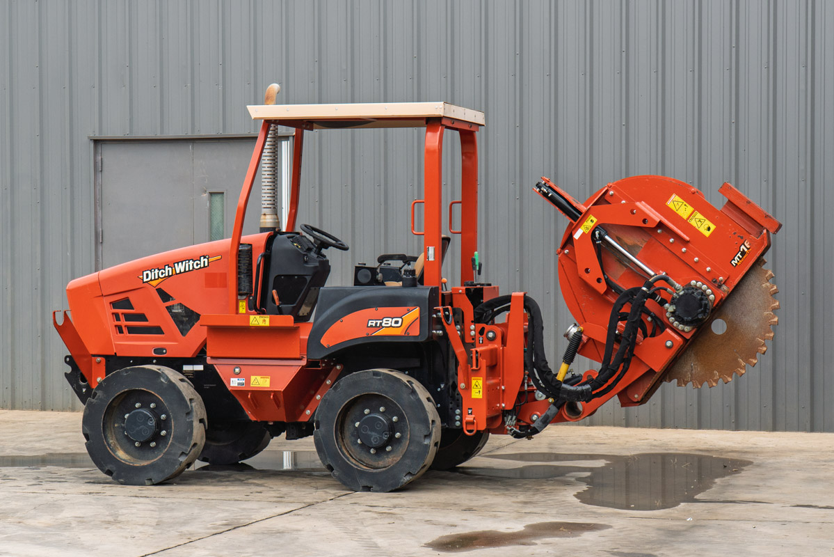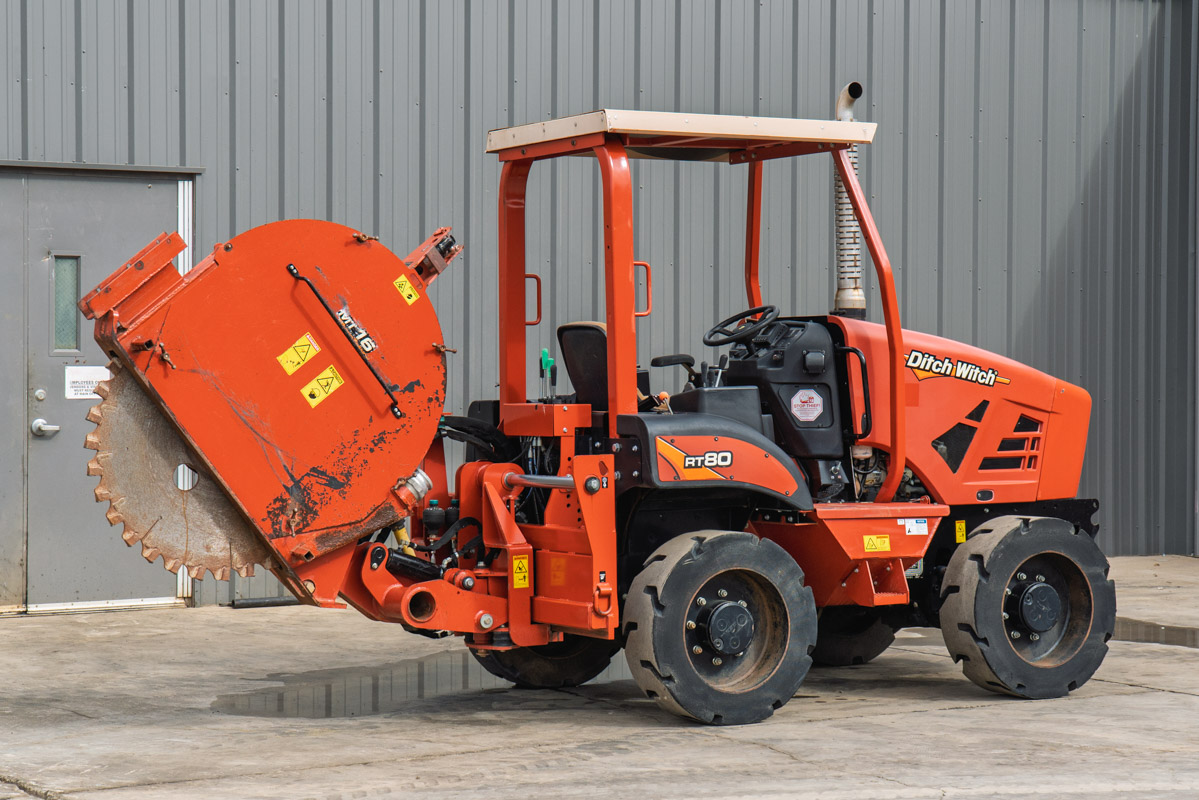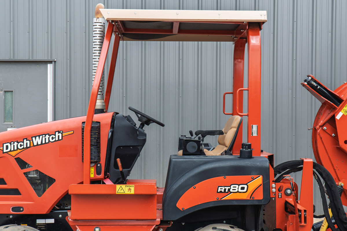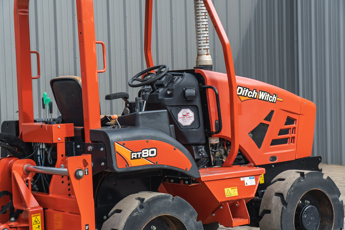 EXCELLENT condition. This RT80 has a 2017 Ditch Witch MT16 micro trencher attachment with a 1.5" blade. The power plant and fluid system will be fully serviced and inspected. This Ditch Witch RT80 will undergo a complete inspection of mechanical and hydraulic systems and will be functionally tested at our facility to ensure it meets our Ready-To- Work standards.