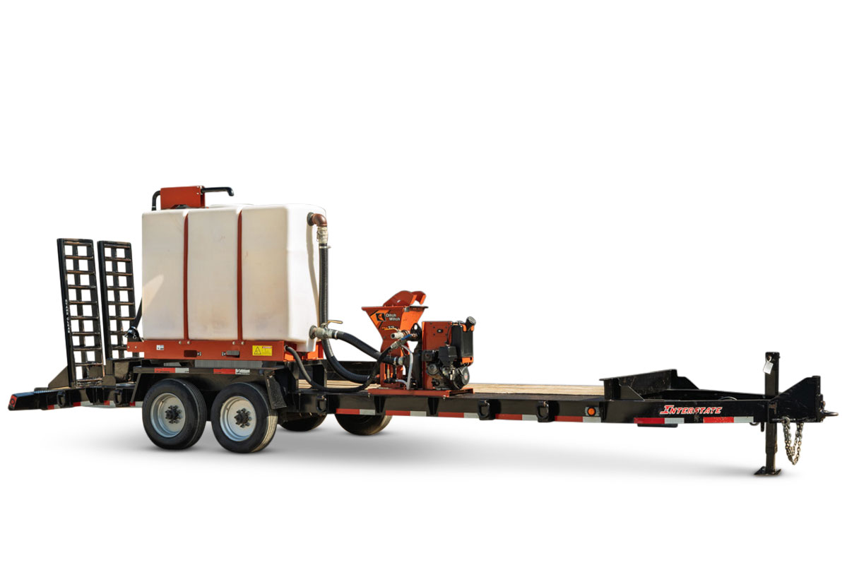 This 2022 Interstate 20BST/S trailer is rated at 12-tons and has electric brakes with fold-up ramps. This trailer package includes a 2022 Ditch Witch FM5X (SKU 9300-792) bentonite mixing system w/ 500-gallon tank.