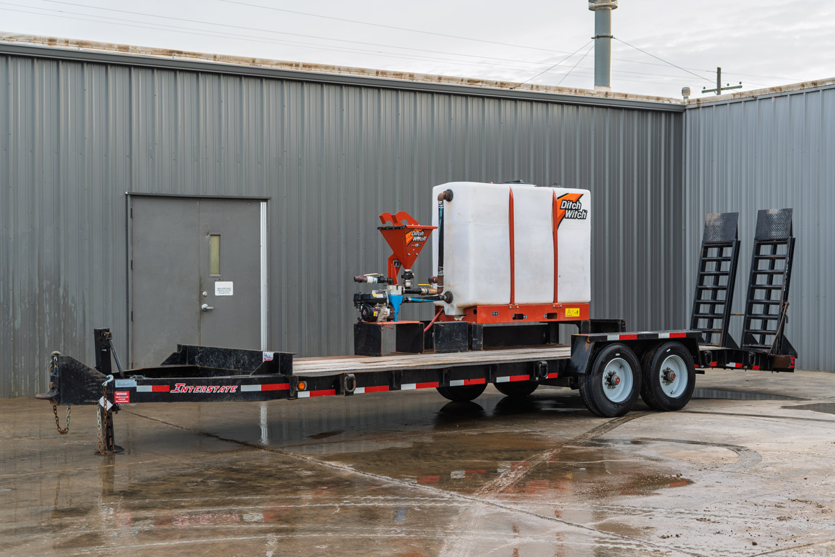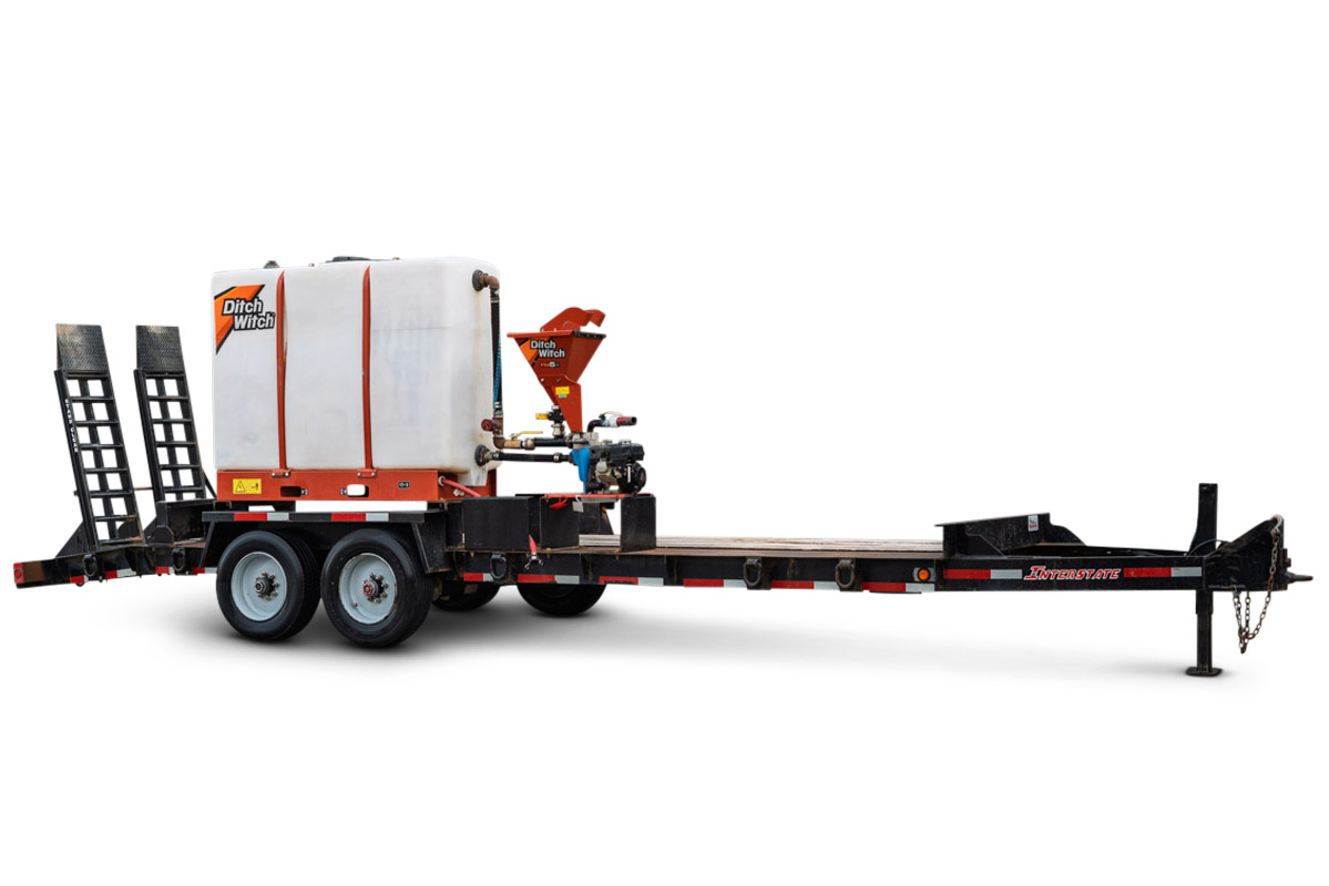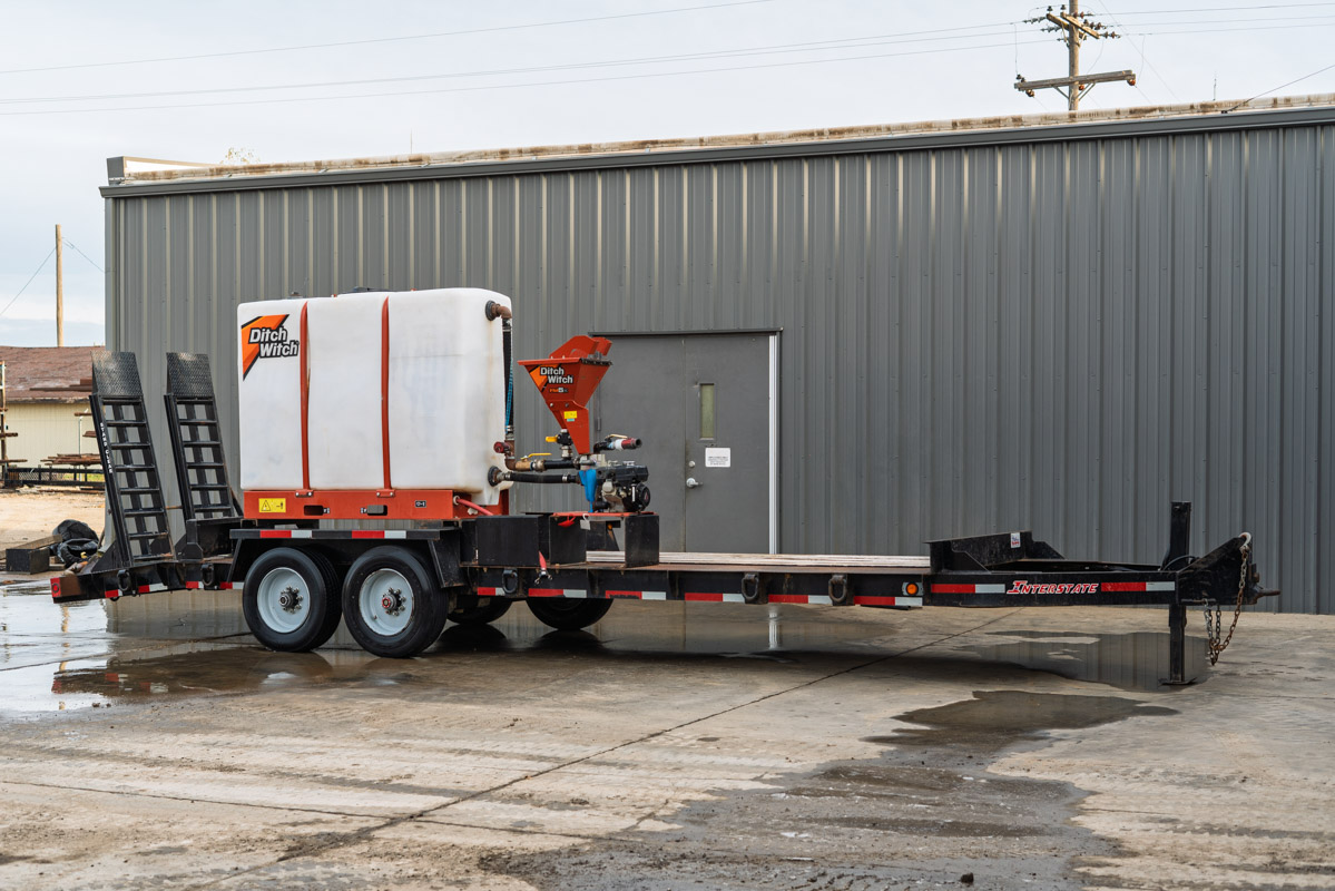 This 2022 Interstate 20BST/S trailer is rated at 12-tons and has electric brakes with fold-up ramps. This trailer package includes a 2022 Ditch Witch FM5X (SKU 9300-810) bentonite mixing system w/ 500-gallon tank.