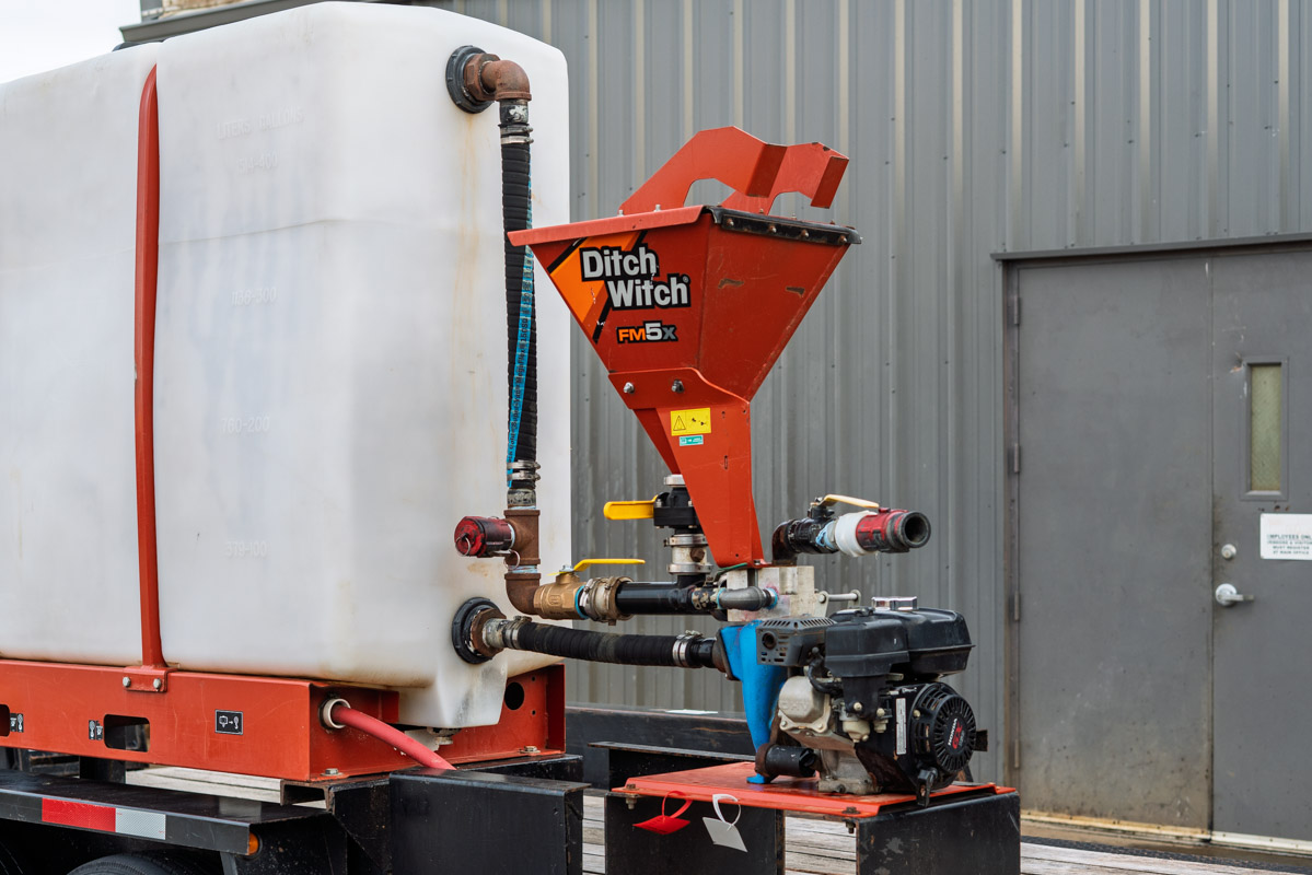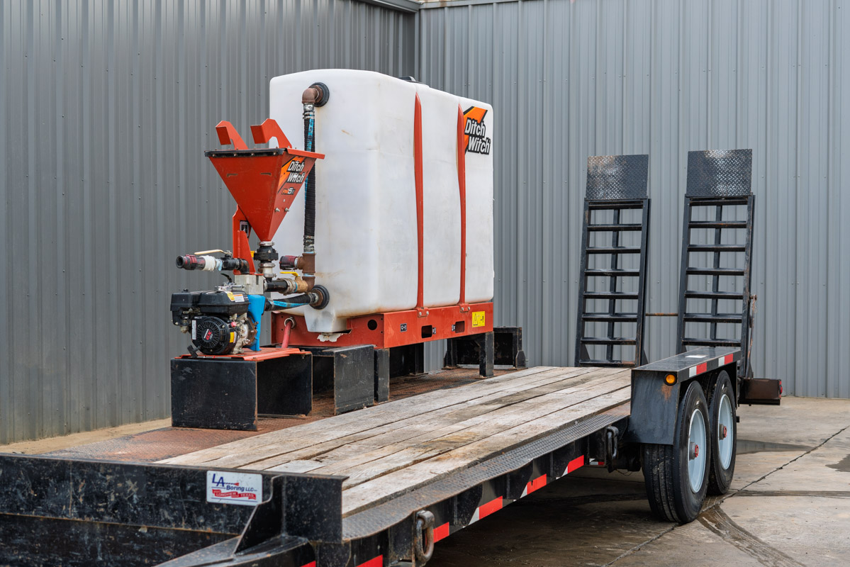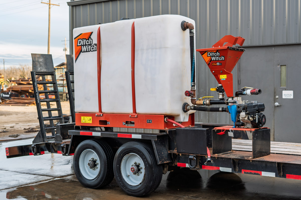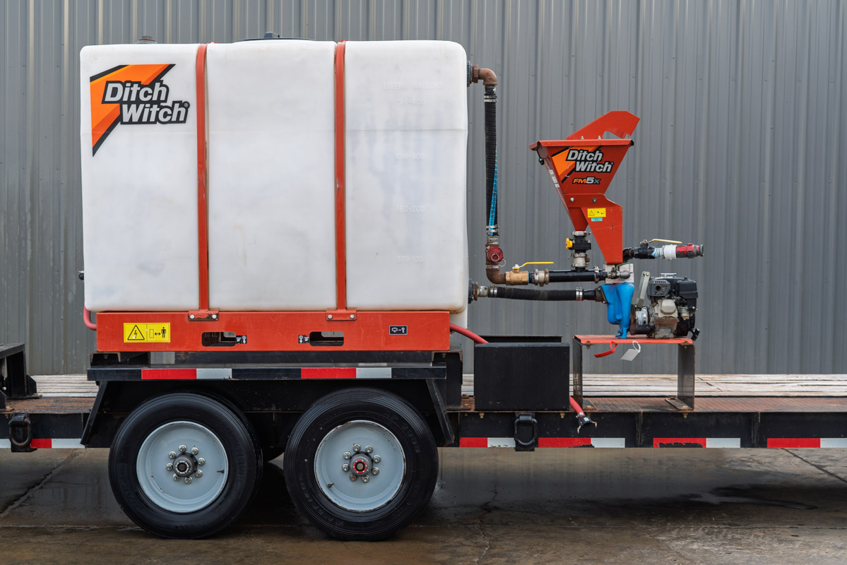 This 2022 Interstate 20BST/S trailer is rated at 12-tons and has electric brakes with fold-up ramps. This trailer package includes a 2022 Ditch Witch FM5X (SKU 9300-810) bentonite mixing system w/ 500-gallon tank.