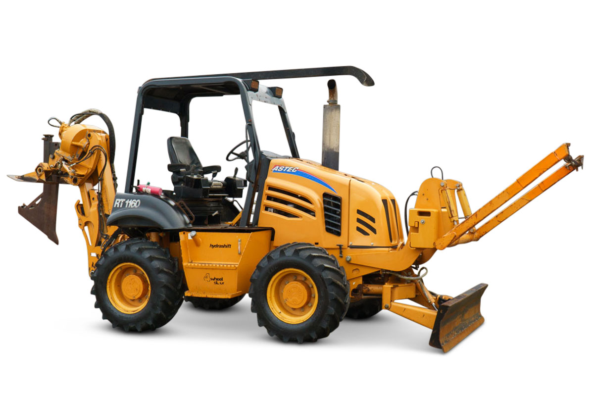 This 2008 Astec RT1160 tractor with only 936 hours is in excellent condition. This RT1160 has a plow attachment, and reel carrier attachment. The power plant and fluid system has been fully serviced and inspected. This RT1160 has undergone a complete inspection of mechanical and hydraulic systems and has been tested at our facility and meets our Ready-To- Work standards. Demo this 2008 Astec RT1160 today! *PRICE ALSO INCLUDES TRENCHER AND BACKHOE ATTACHMENTS.